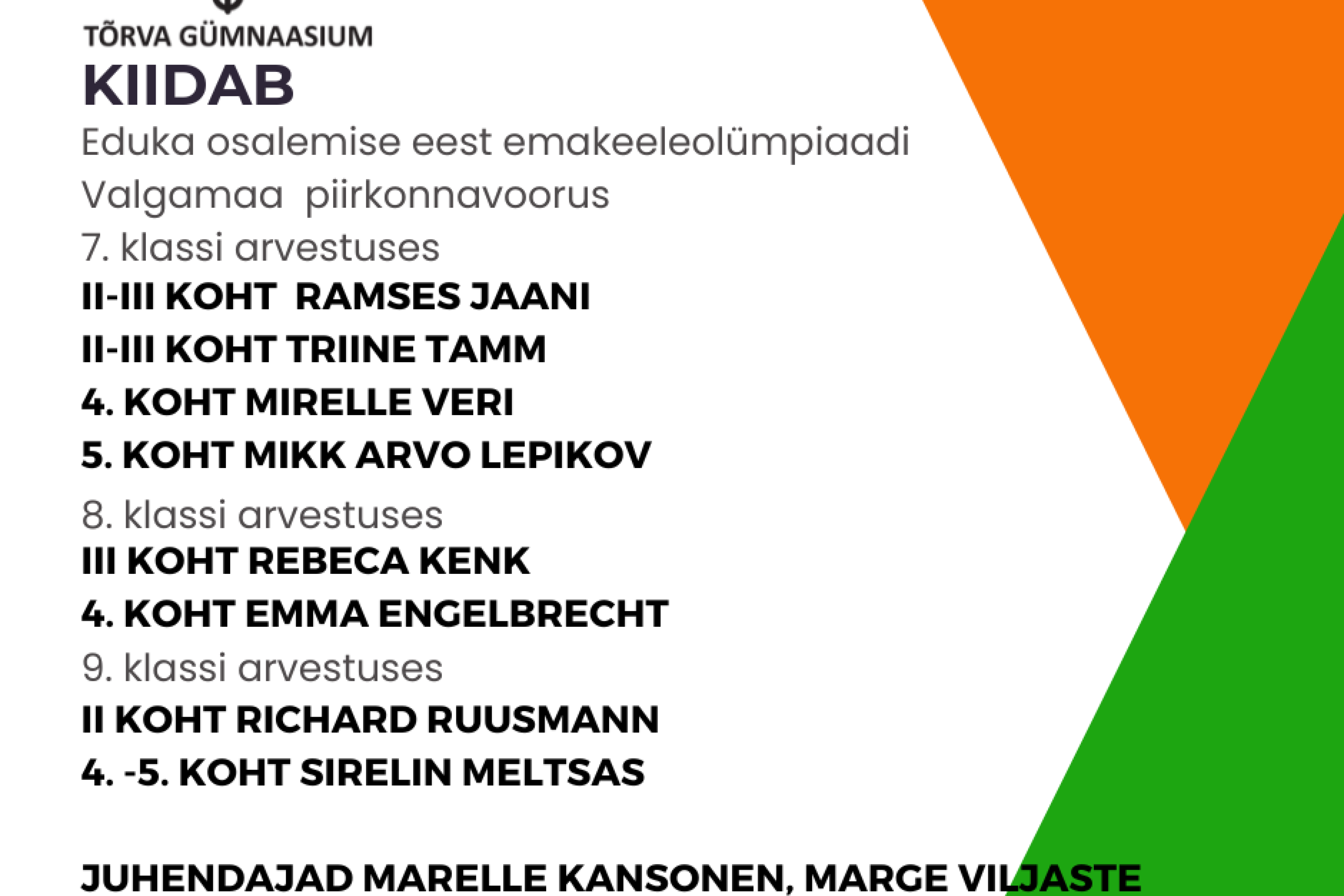 Kiidame emakeeleolümpiaadil osalejaid! | Tõrva Gümnaasium