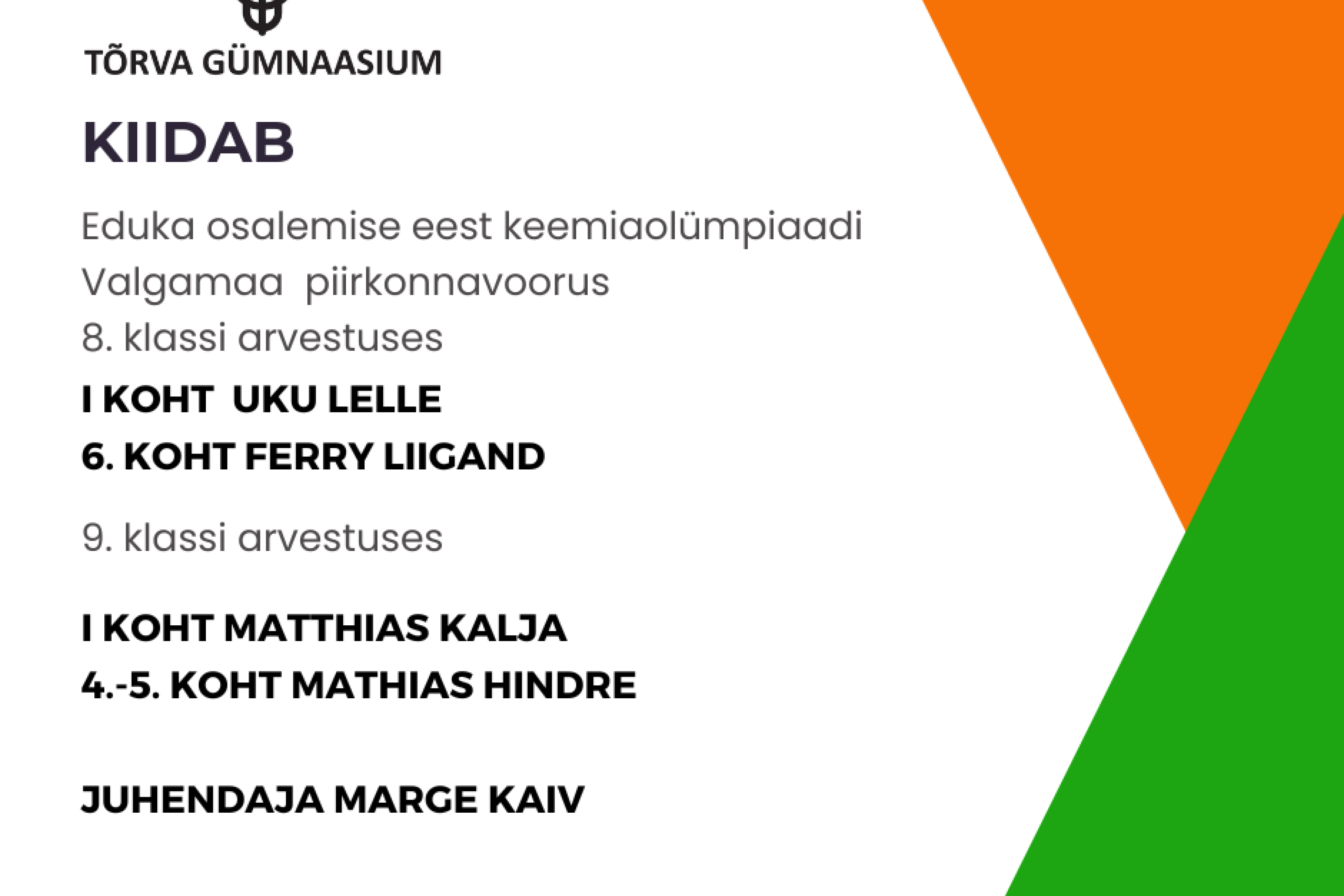 Kiidame keemiaolümpiaadil osalejaid! | Tõrva Gümnaasium