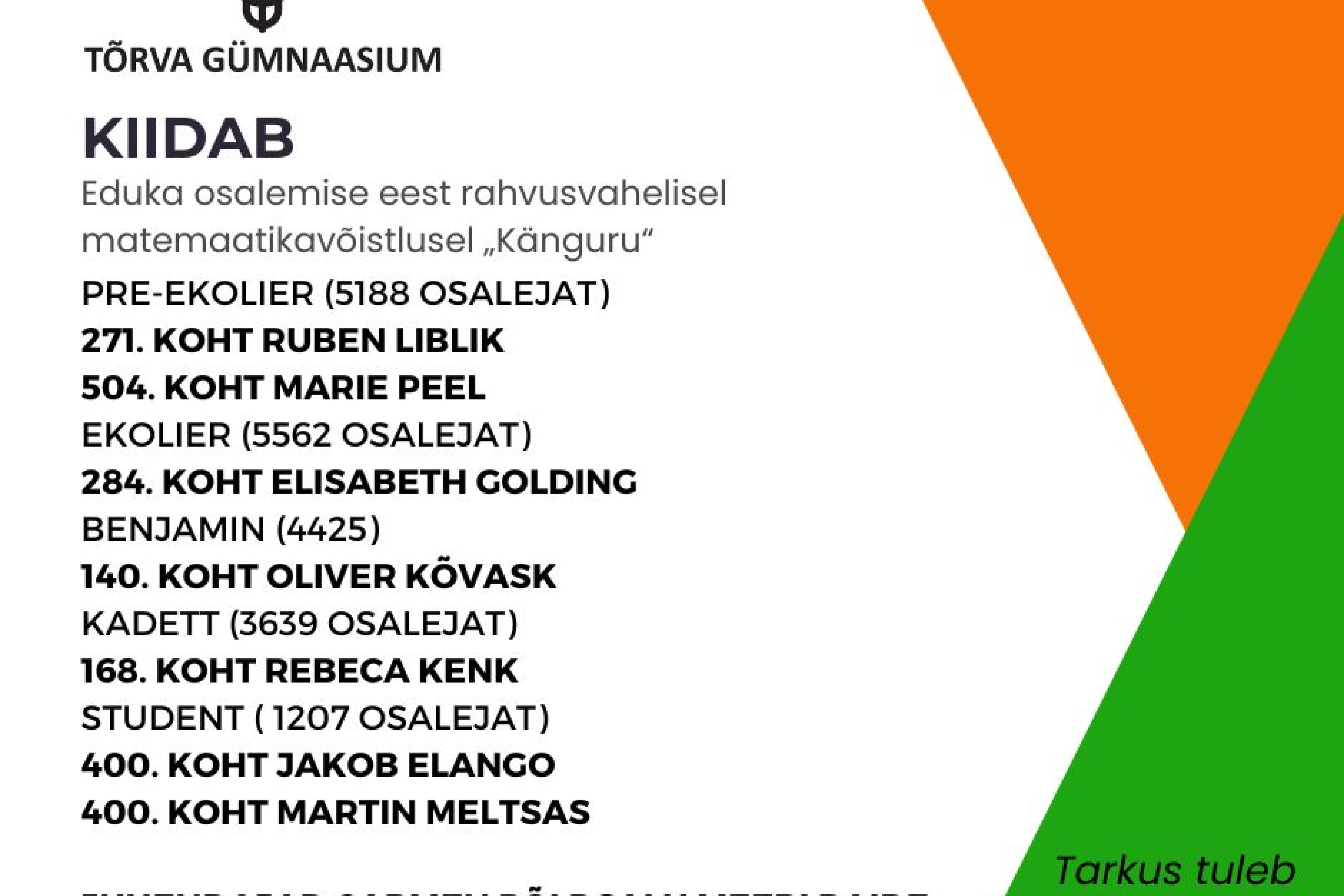 3. Kiidame matemaatikavõistlusel "Känguru" osalejaid!
