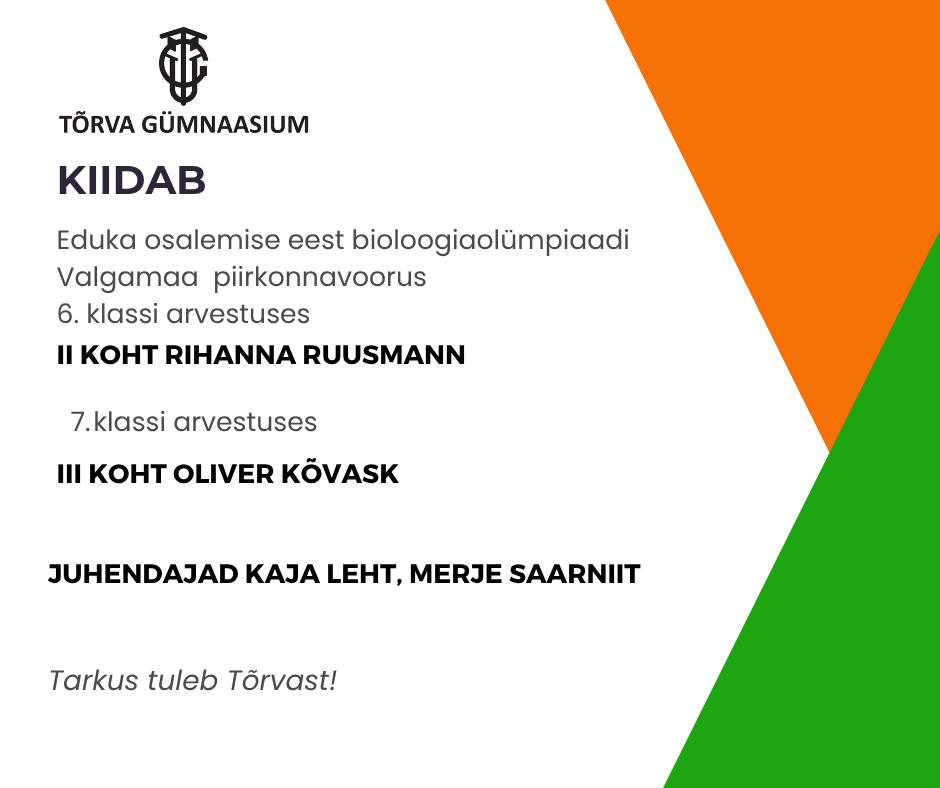🌱 10. klassi õpilaste vastuvõtt 2026 kevadel Loomise kuupäev 30.03.2026 Autor Tiivi Rüütel Osaleme YAM (Youth Aware of Mental health) programmis Loomise kuupäev 27.03.2026 Autor Heidi Tiiter 📱Kiidame tublisid nutisportlasi! Loomise kuupäev 22.03.2026 Autor Tiivi Rüütel Kiidame nutikat Tõrva Gümnaasiumi CanSat meeskonda Loomise kuupäev 20.03.2026 Autor Tiivi Rüütel Vaata rohkem