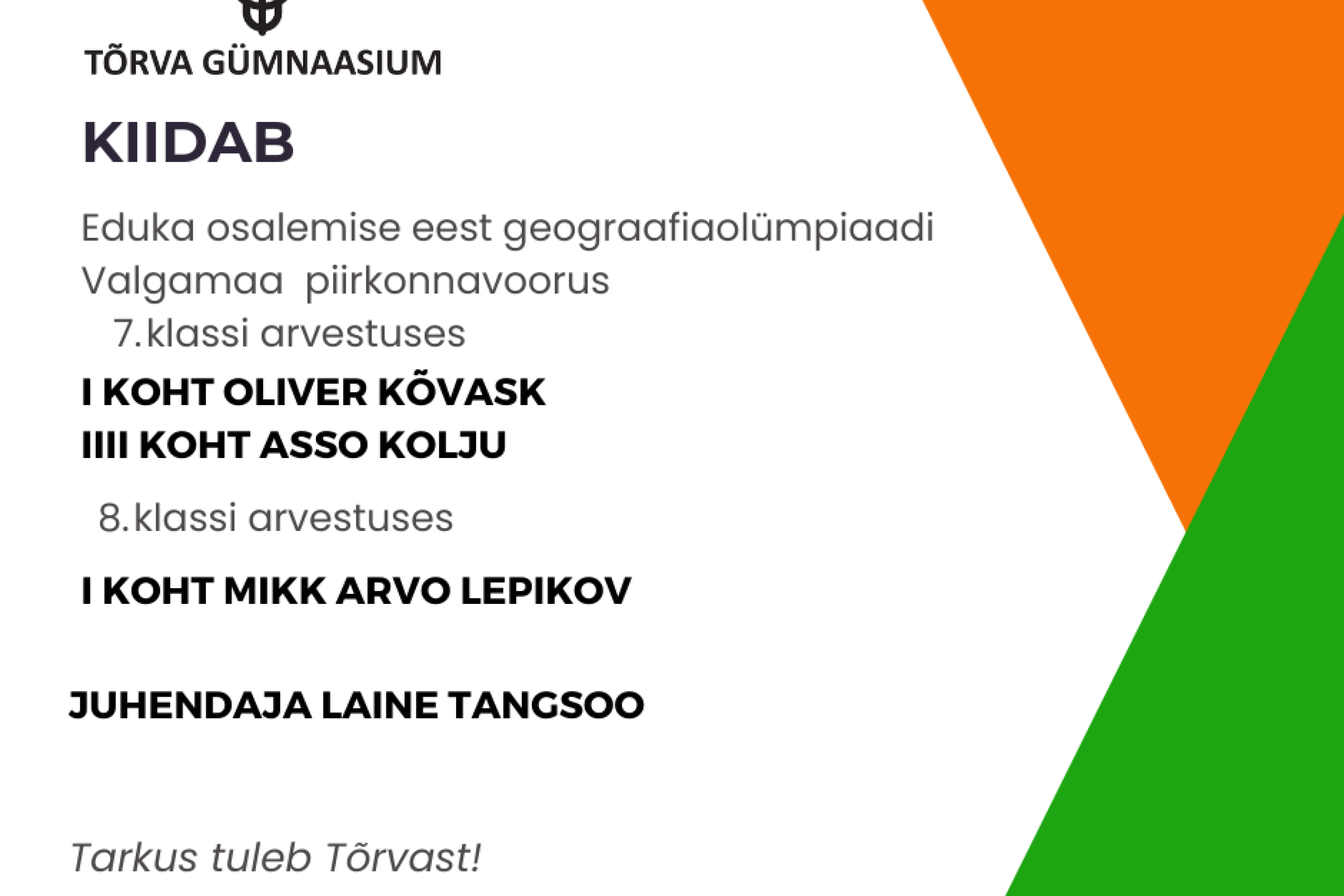 Osalesime edukalt "Nupute vällä" VI hooaja II võistlusel Loomise kuupäev 20.02.2026 Autor Tiivi Rüütel 🛻Meie kooli kiired masinad võidutsesid Derby võistlusel Loomise kuupäev 20.02.2026 Autor Tiivi Rüütel 🎨Kiidame tublisid kunstnikke! Loomise kuupäev 12.02.2026 Autor Tiivi Rüütel Kiidame tublisid emakeele tundjaid! Loomise kuupäev 09.02.2026 Autor Tiivi Rüütel Vaata rohkem
