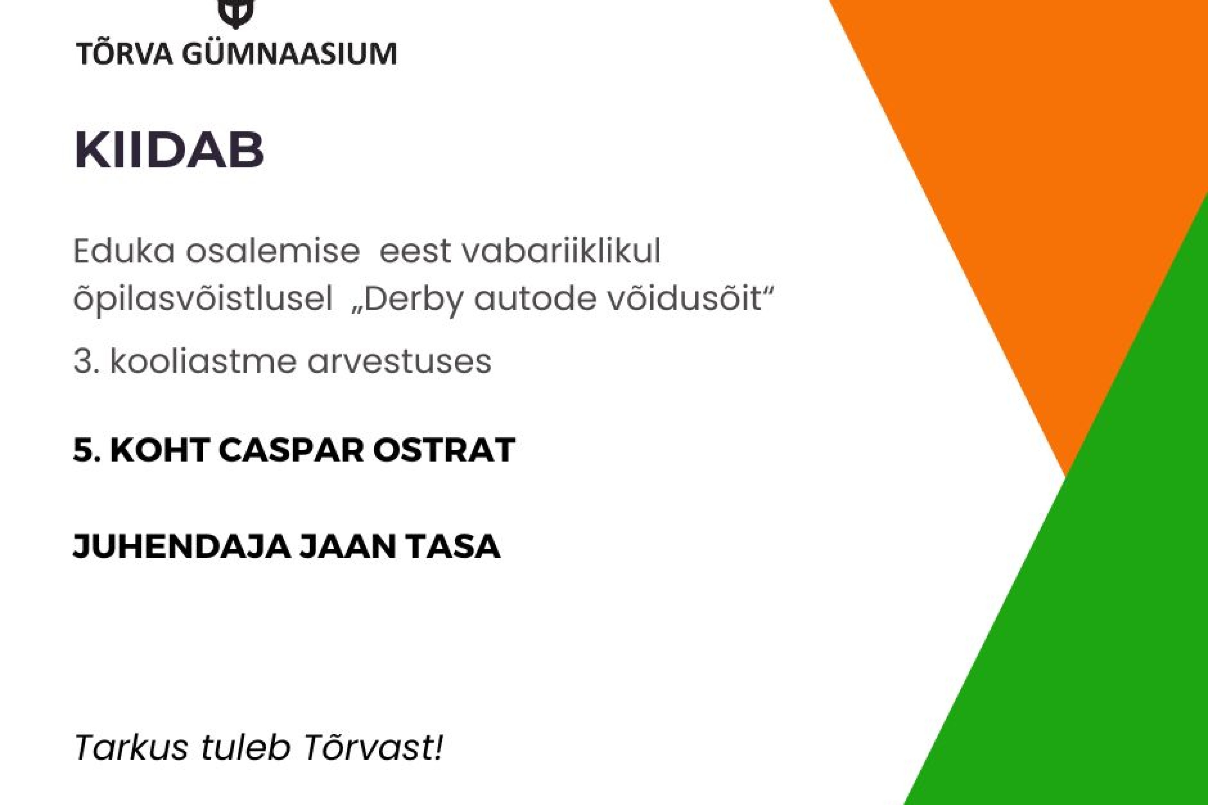 Kiidame vabariiklikul õpilasvõistlusel „Derby autode võidusõit“ osalejaid!