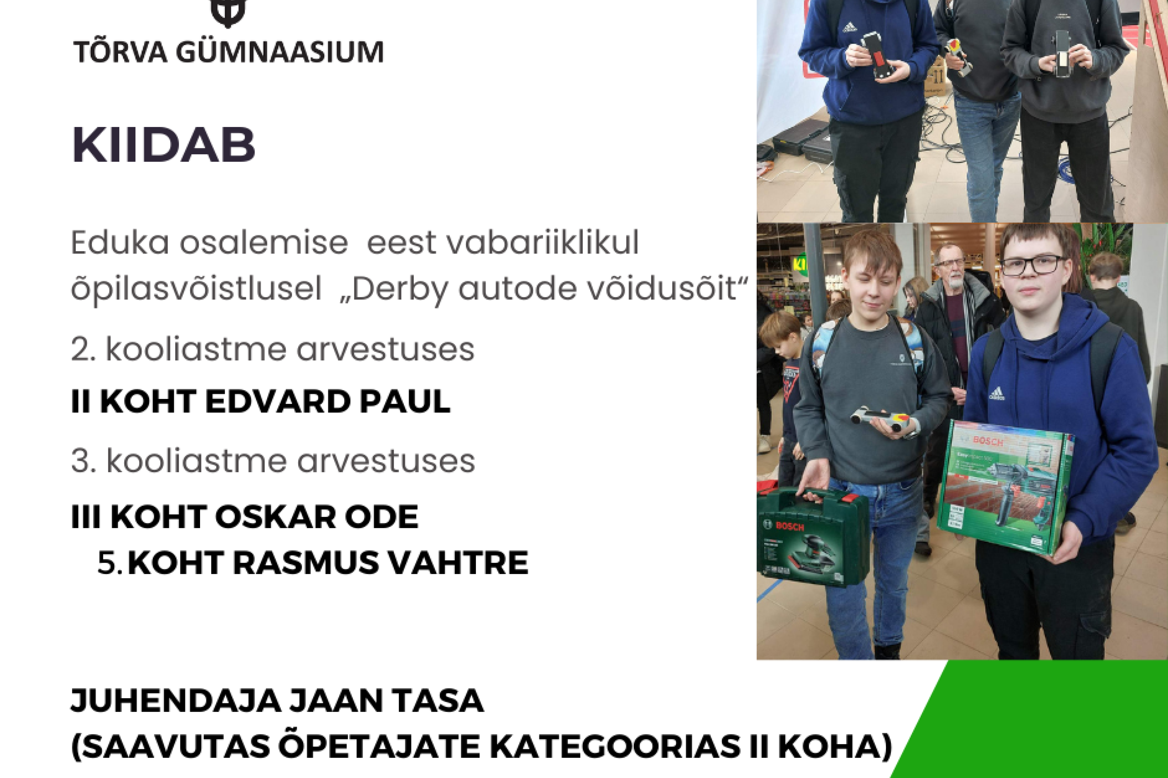 Oskar Ode saavutas 3.koha ja Rasmus Vahtre 5. koha III kooliastmes, kus osalejaid oli 61.