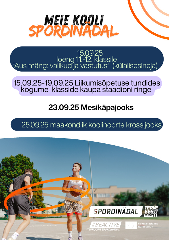 Septembrikuus tähistame meie koolis üleeuroopalist spordinädalat. Selle eesmärk on pakkuda kõigile liikumisrõõmu, ühtsustunnet ja väärtuspõhist sportimist.